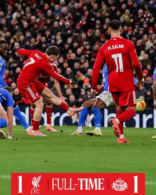 北京时间12月4日04:15,英超联赛第14轮,利物浦主场迎战桑德兰。上半场休姆远射击中横梁,麦卡利斯特中柱,两队暂0-0战平;下半场阿德雷特头球击中立柱,范戴克送礼,塔尔比破门,维尔茨造成穆基勒乌龙球,最终利物浦1-1桑德兰,无缘连胜。