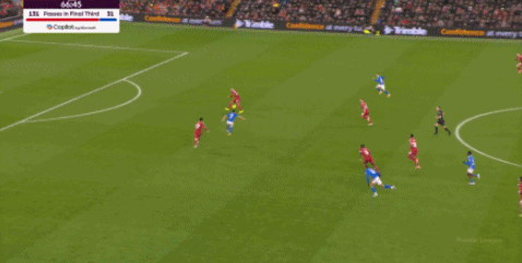 这是比赛第67分钟,利物浦截得球权,范戴克控球。有些凌乱的场面下,范戴克直传,想将球交给身前的麦卡利斯特。不过,范戴克送的是刀山球,麦卡无法处理。桑德兰意外获得球权,迅速组织进攻。