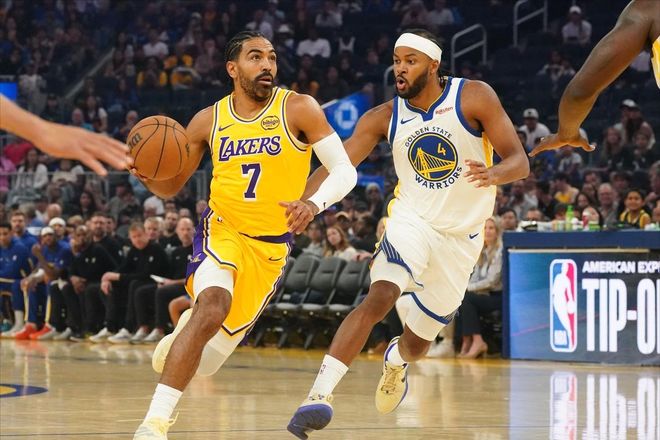 NBA季前赛迎来了一场焦点之战——新赛季的首个湖勇大战就此上演!湖人方面,詹姆斯和东契奇依旧高挂免战牌,而搞定了库明加续约问题的勇士,则是全主力出战,考虑到双方账面实力的差距,从一开始,大家就没有对这场比赛的胜负抱有太多幻想。实际上,别看勇士最终只赢了8分,从比赛的进程来看,双方最大24分的分差,才更符合双方的实力差距。勇士主帅科尔眼看练兵效果已经达到,早早地鸣金收兵,兑现了自己使用长轮换的承诺,开始考察几位板凳球员。