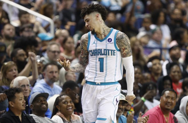 更令人惊叹的是黄蜂的鲍尔,他在对阵奇才的比赛中狂砍38分13篮板13助攻的“三双”数据,25中13的投篮效率搭配12中5的三分表现,不仅率队以26分大胜,更成为黄蜂队史首位单场达成35+10+10+3的球员;